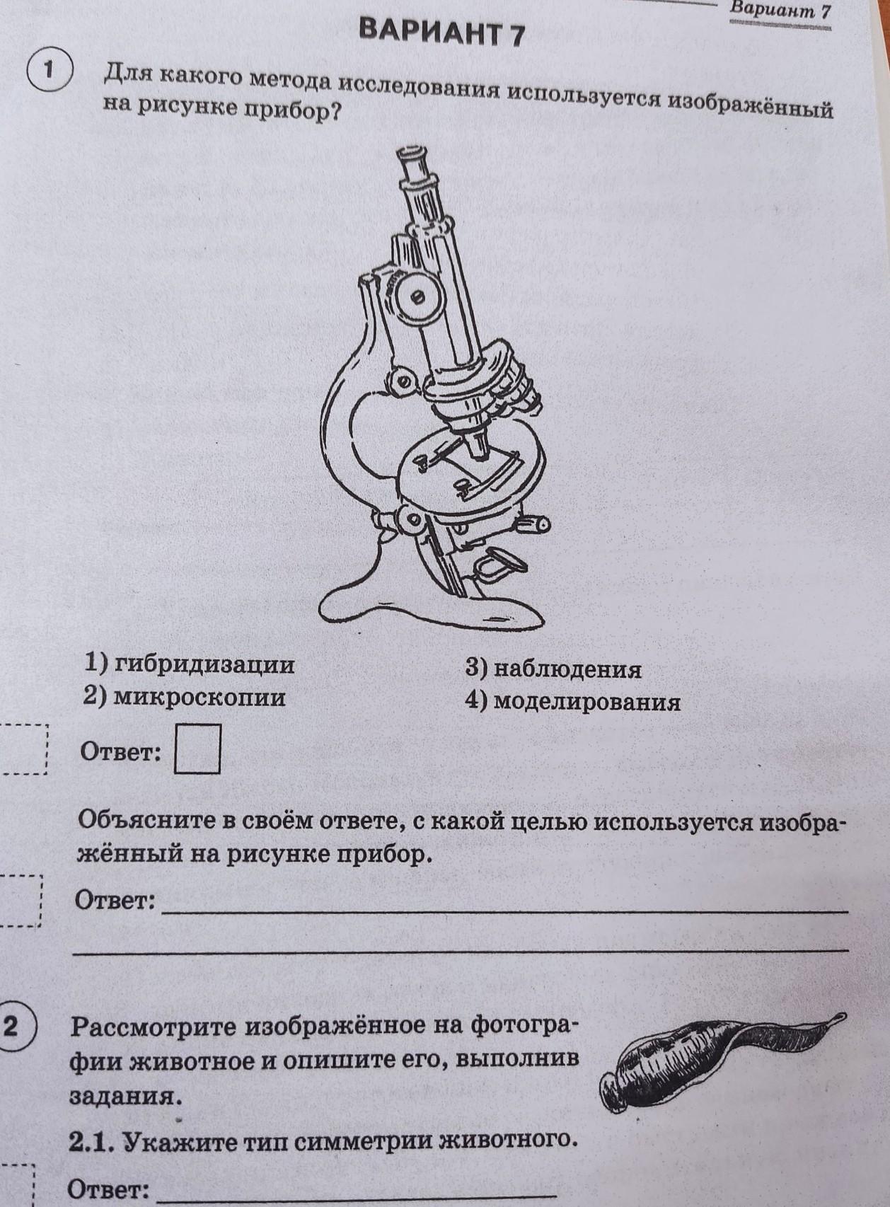 ВАРИАНТ 7 Для какого метода исследования используется изображённый на рисунке прибор? лу 1) гибридизации 2) микроскопии 3) наблюдения 4) моделирования