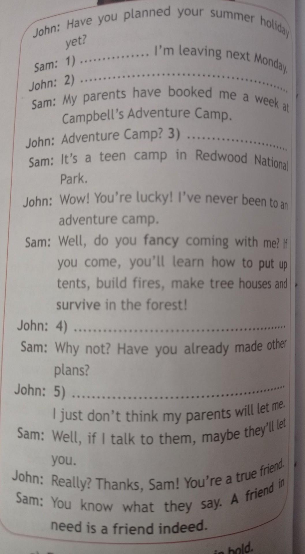 2. My perents have booked me a week at Campbell's Adventure Camp.- Мои родители забронировали мне неделю в лагере приключений Кэмпбелла.