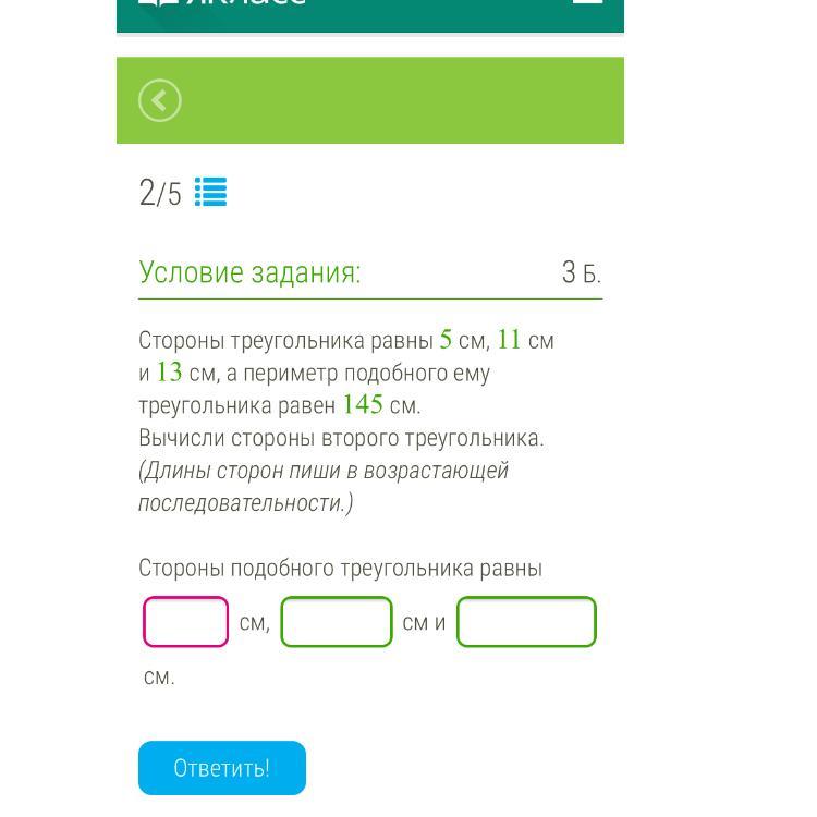Теперь найдём во сколько раз больше 2-ой треугольник чем 1-ый
