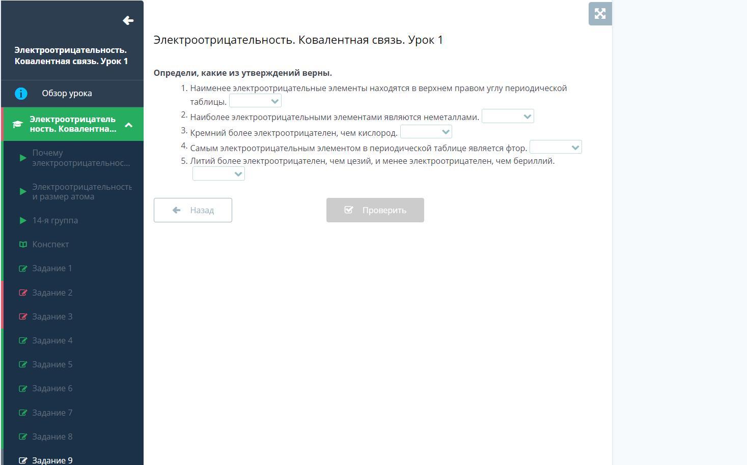 Наименее электроотрицательные элементы находятся в верхнем правом углу периодической таблицы.