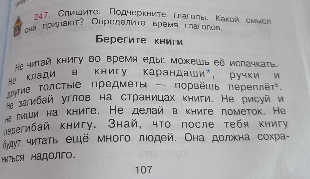глаголы: читай, испачкать, клади, порвёшь, загибай, рисуй, пиши, делай, перегибай, знай, читать, сохраниться