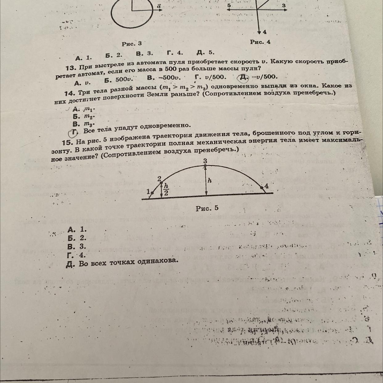 15. На рис. 5 изображена траектория движения тела, брошенного под углом к гори-
