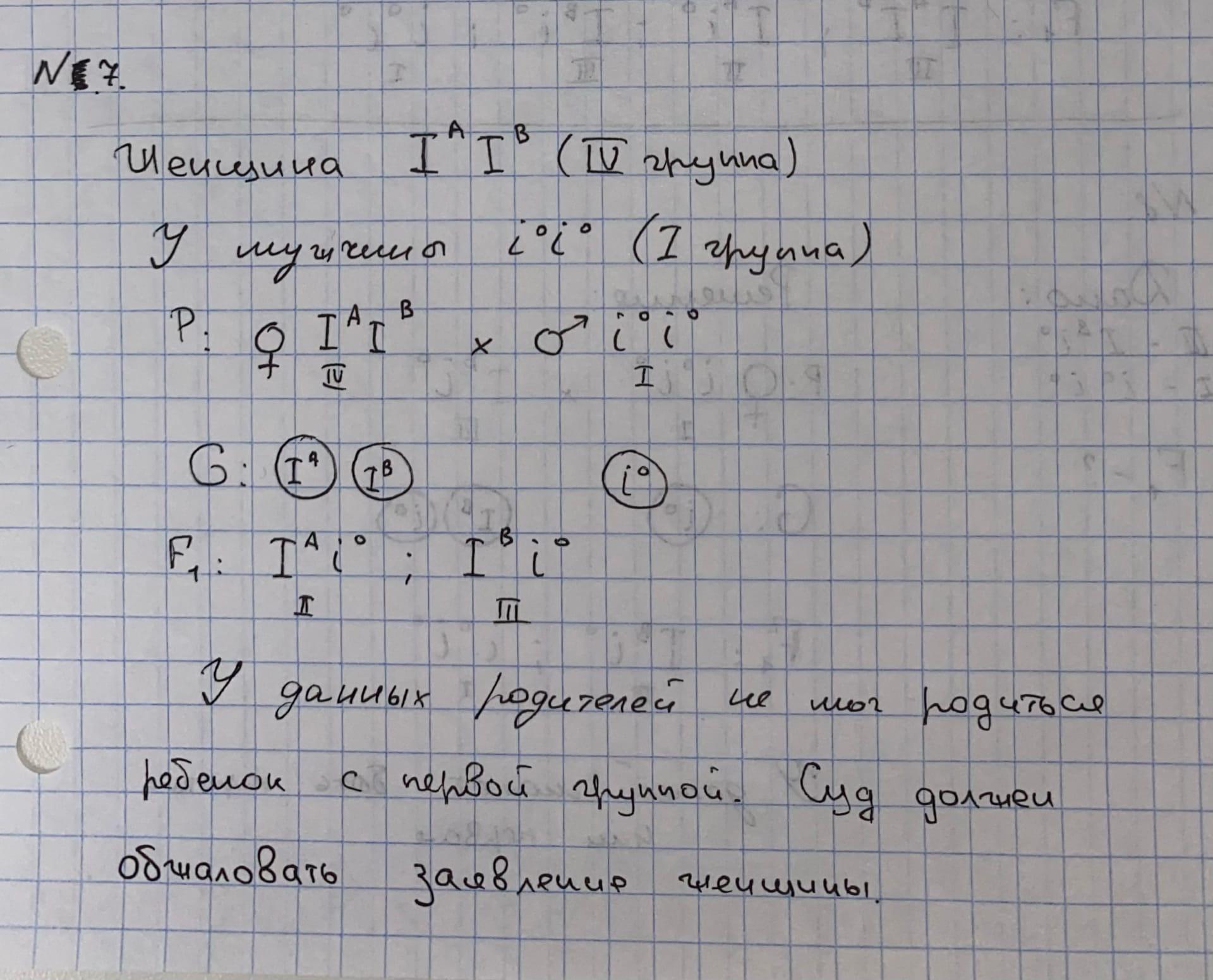 В девятом пара с первой группой крови не может иметь ребенка с четвертой группой крови, так как у обоих родителей аллели i0, а для ребенка с четвертой группой нужны аллели IA и IB (Надеюсь поняла, что 0, A, B нужно написывать маленькой буковкой около буквы I сверху, прямо как в задачах с фотографии.