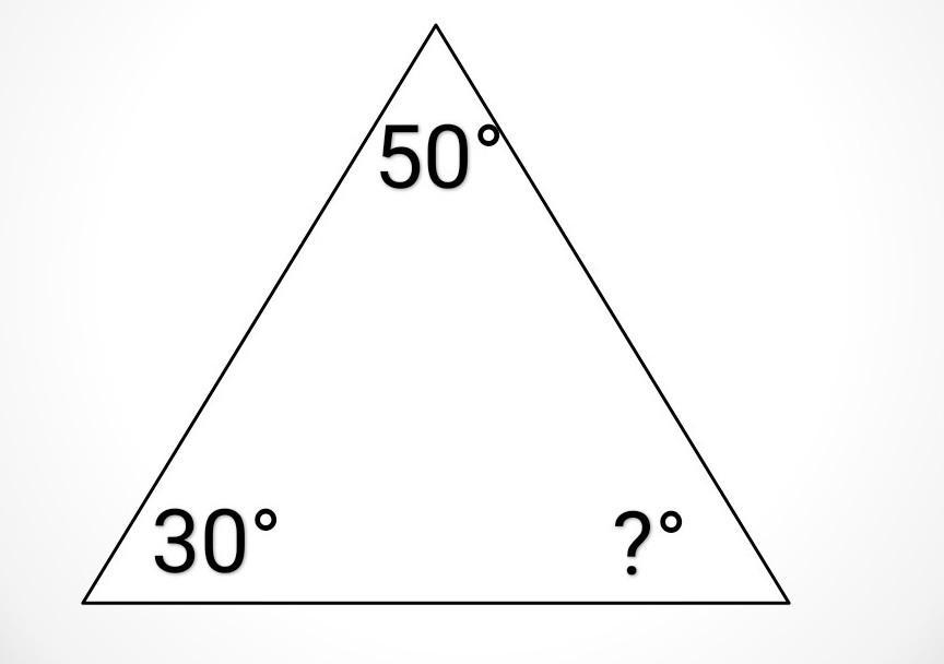 т.к сумма углов треугольника 180 следовательно 180-50-30=100