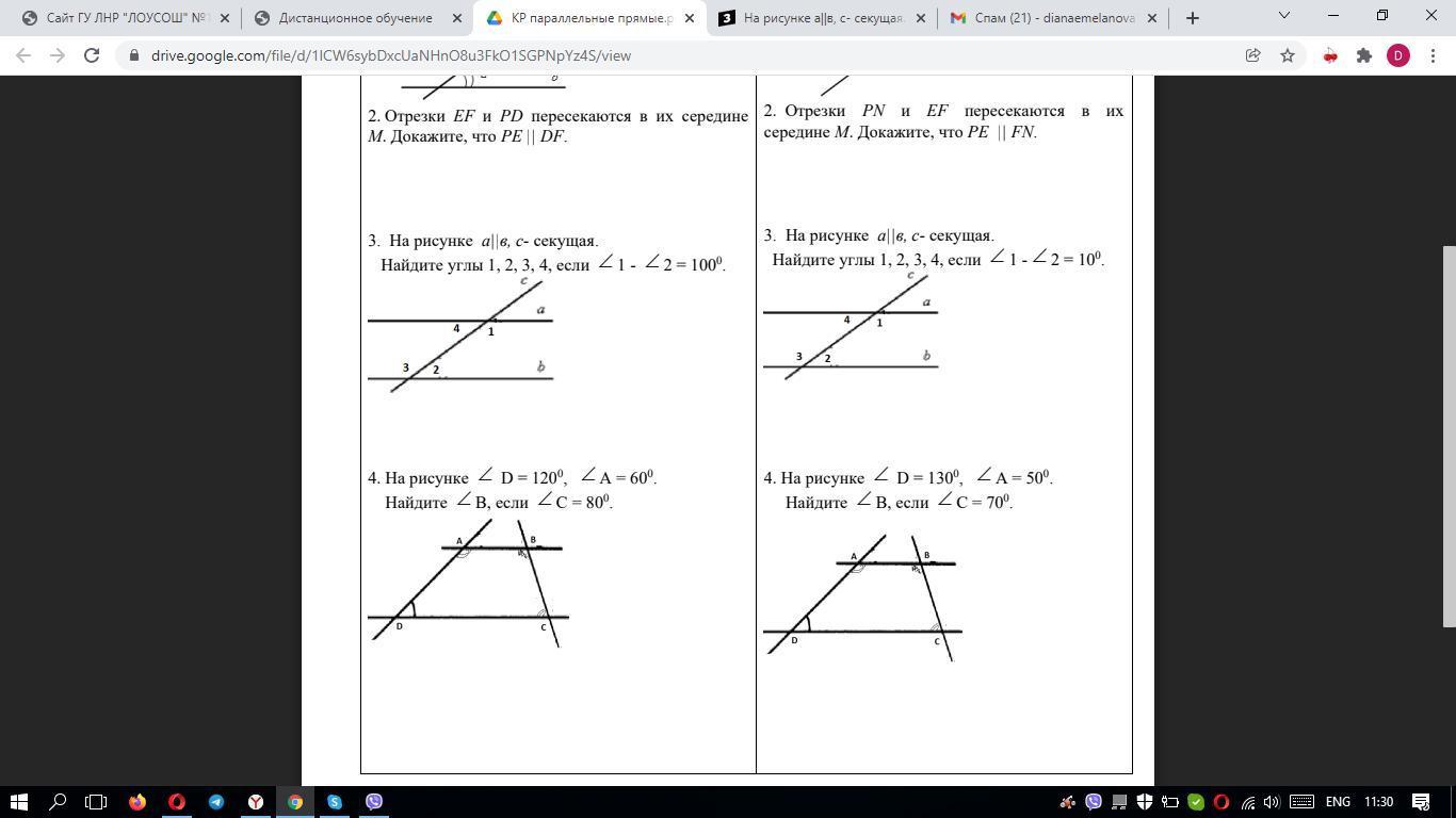 Найдите углы 1, 2, 3, 4, если 1 - 2 = 100