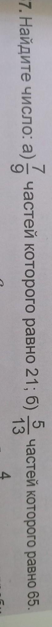 . Найдите число: а) 7/9 частей которого равно 21; б) 5/13 частей которого равно 65.