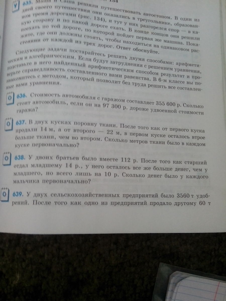638) x - старший брат (112-x) - младший брат составим уравнение: x-14=(112-x)+10 x-14=112-x+10 x+x=112+10+14 2x=136 x=68 (руб) у старшего 2)112-68=44 ( руб) - у младшего Ответ: 68руб ; 44руб