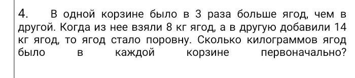 Х = 11 (кг) - ягод было первоначально в первой корзине.