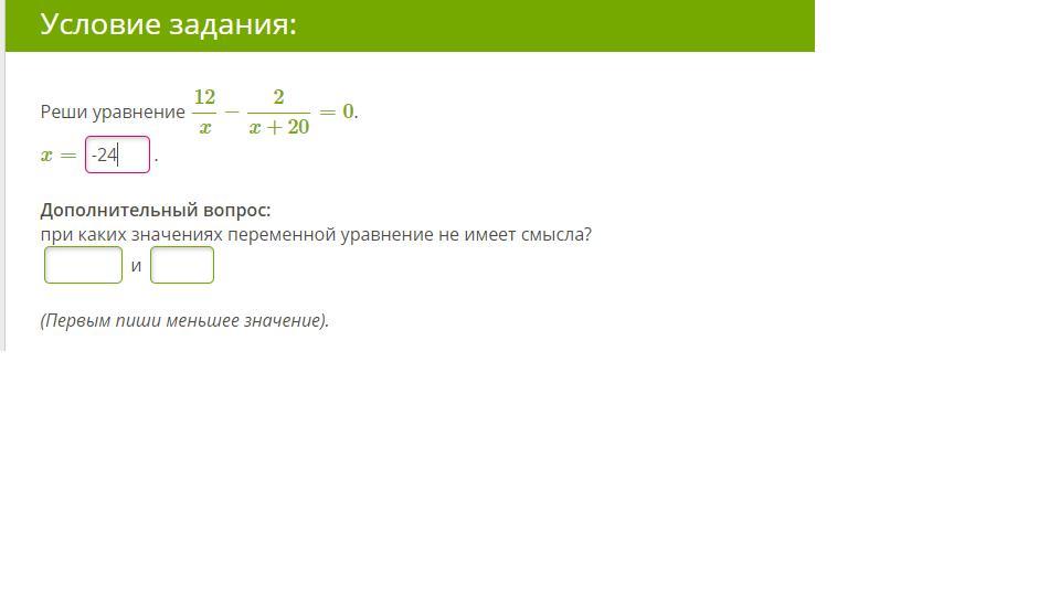-24 ответ,а не имеет смысла когда х равен нулю,и икс равен-20