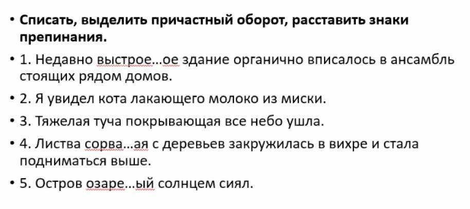 4. Листва*, /сорванная с деревьев/, закружилась в вихре и стала подниматься выше.