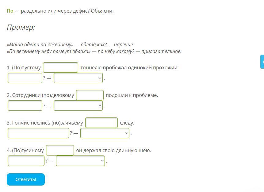 1) прилагательное, 2) наречие, 3) прилагательное, 4) наречие