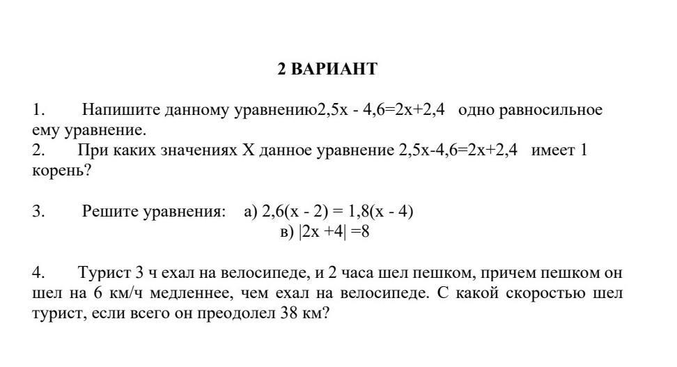 1. Напишите данному уравнению2,5х - 4,6-2х+2,4 одно равносильное ему уравнение. 2. При каких значениях Х данное уравнение 2,5х-4.6-2х+2,4 имеет 1
