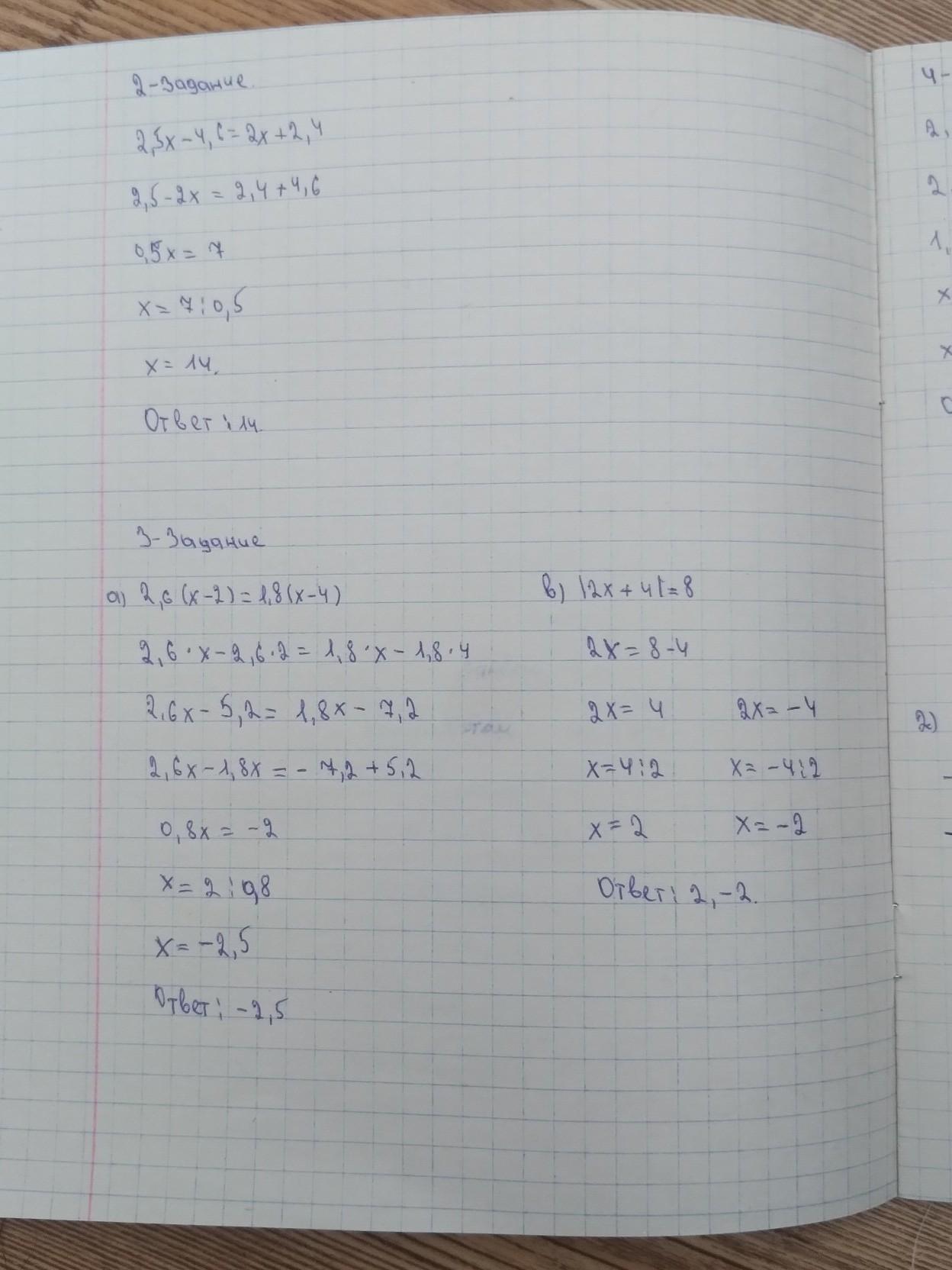 Решите уравнения: а) 2,6(х - 2) - 1,8(x-4) в) (2х +4-8