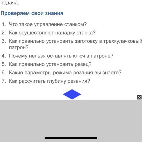 7.t = D/2, где D – диаметр отверстия, мм. При отрезании и вытачивании канавок глубина резания соответствует ширине прорези, выполняемой резцом за один проход. Глубина резания принимается в зависимости от величины припуска.