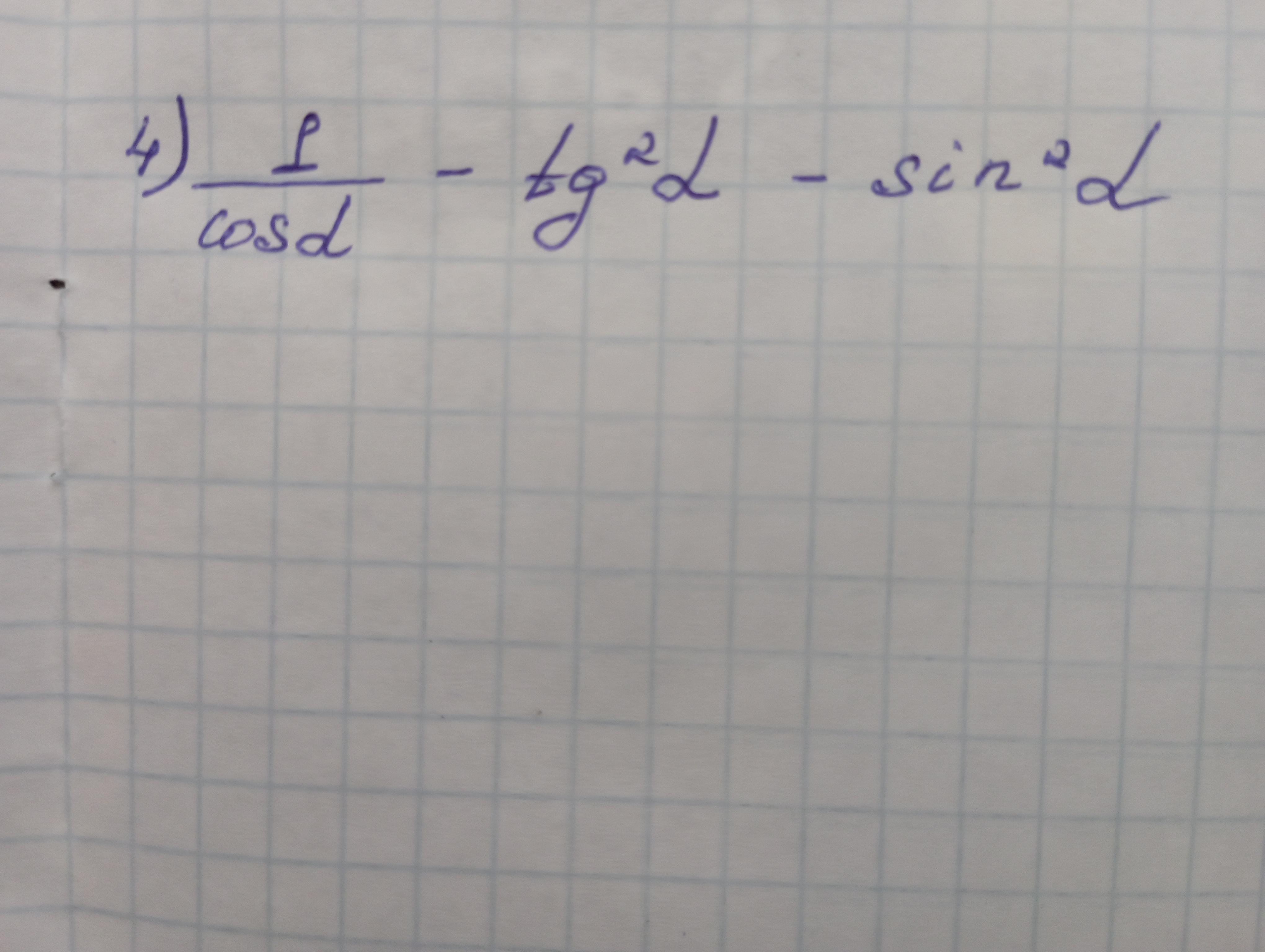 (1/cosa) - tg^2a - sin^2a