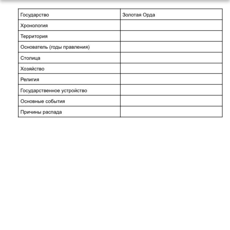 Територия- В состав Золотой Орды входили Западная Сибирь, Северный Хорезм, Волжская Болгария, Северный Кавказ, Крым, Дешт-и-Кипчак (Кипчакская степь от Иртыша до Дуная). Крайним юго-восточным пределом Золотой Орды был Южный Казахстан (ныне г. Джамбул), а крайним северо-восточным - г. Тюмень