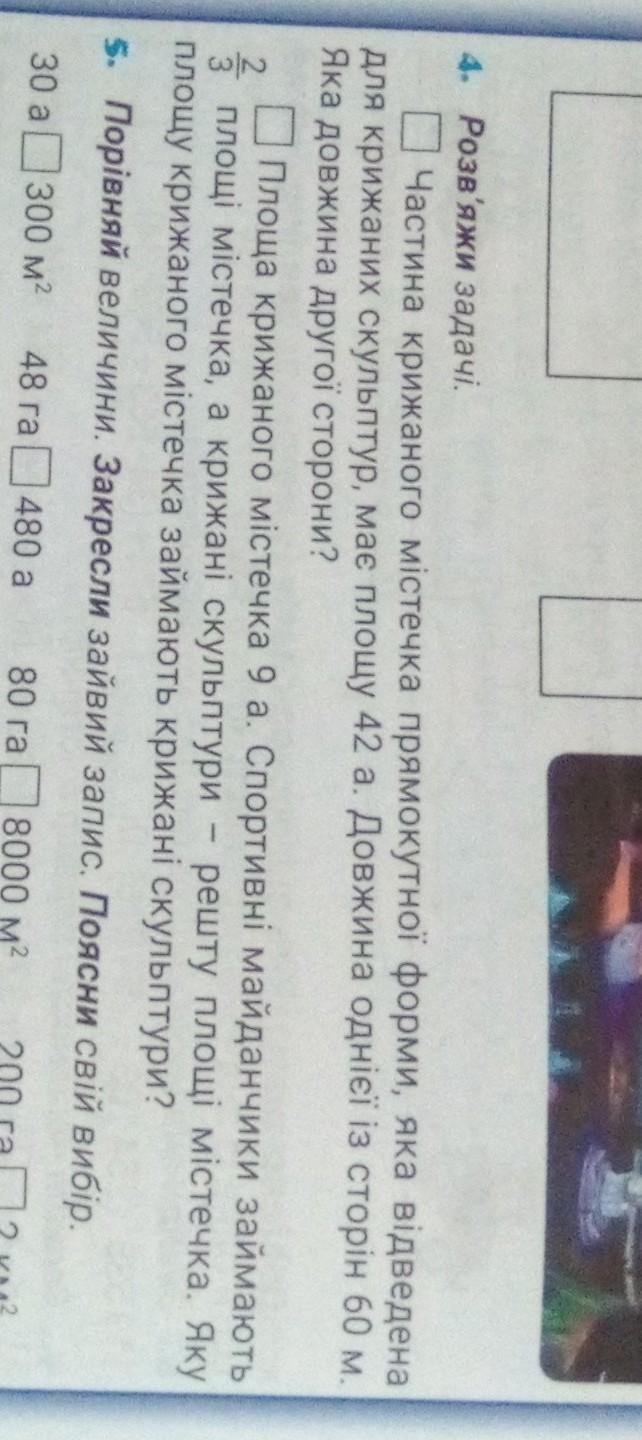 4 . 1 ) S = 42 a = 4200 м² ; нехай друга сторона b , тоді