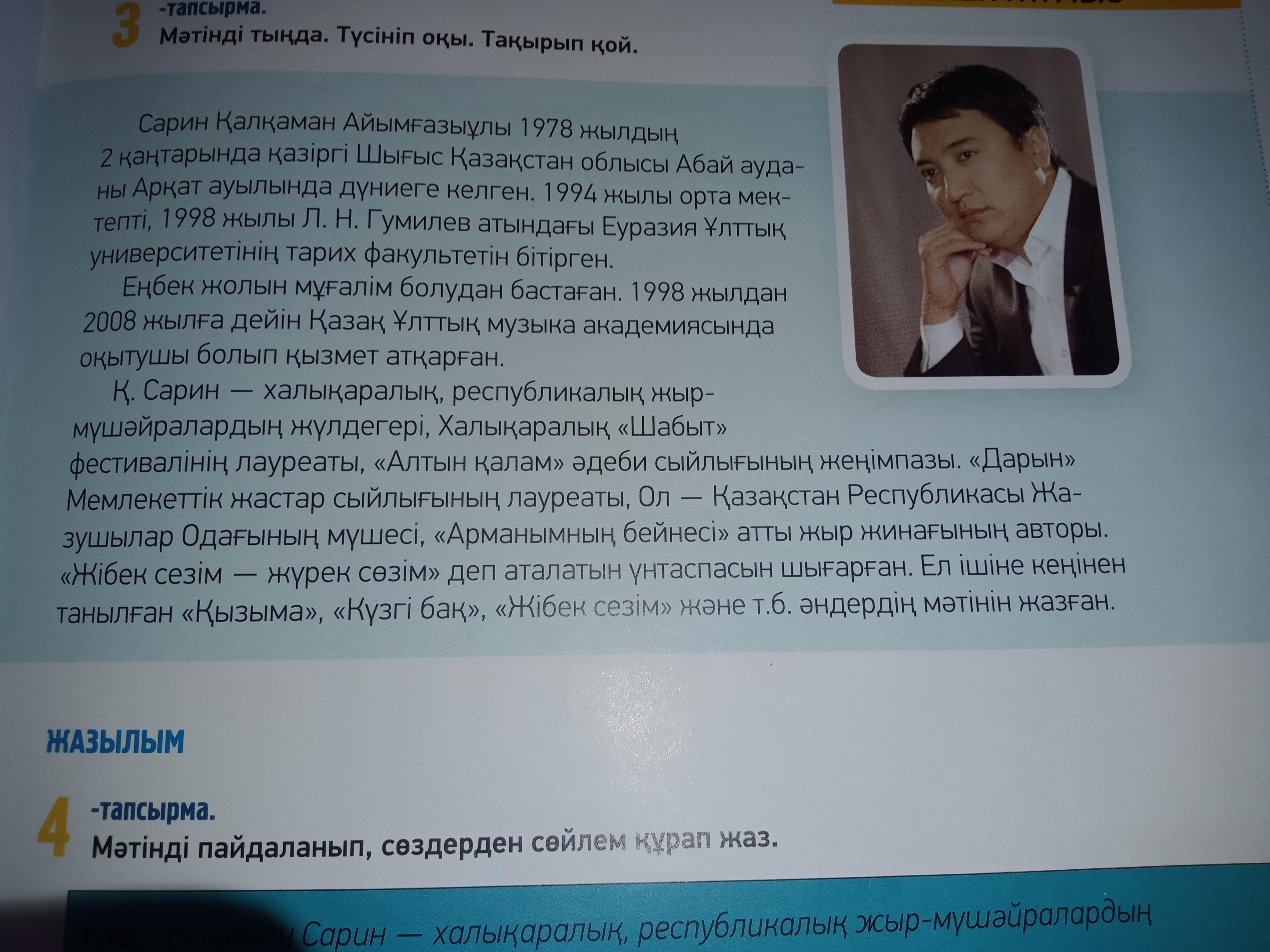 Мәтінді пайдаланып, сездерден сөйлем құрап жаз.