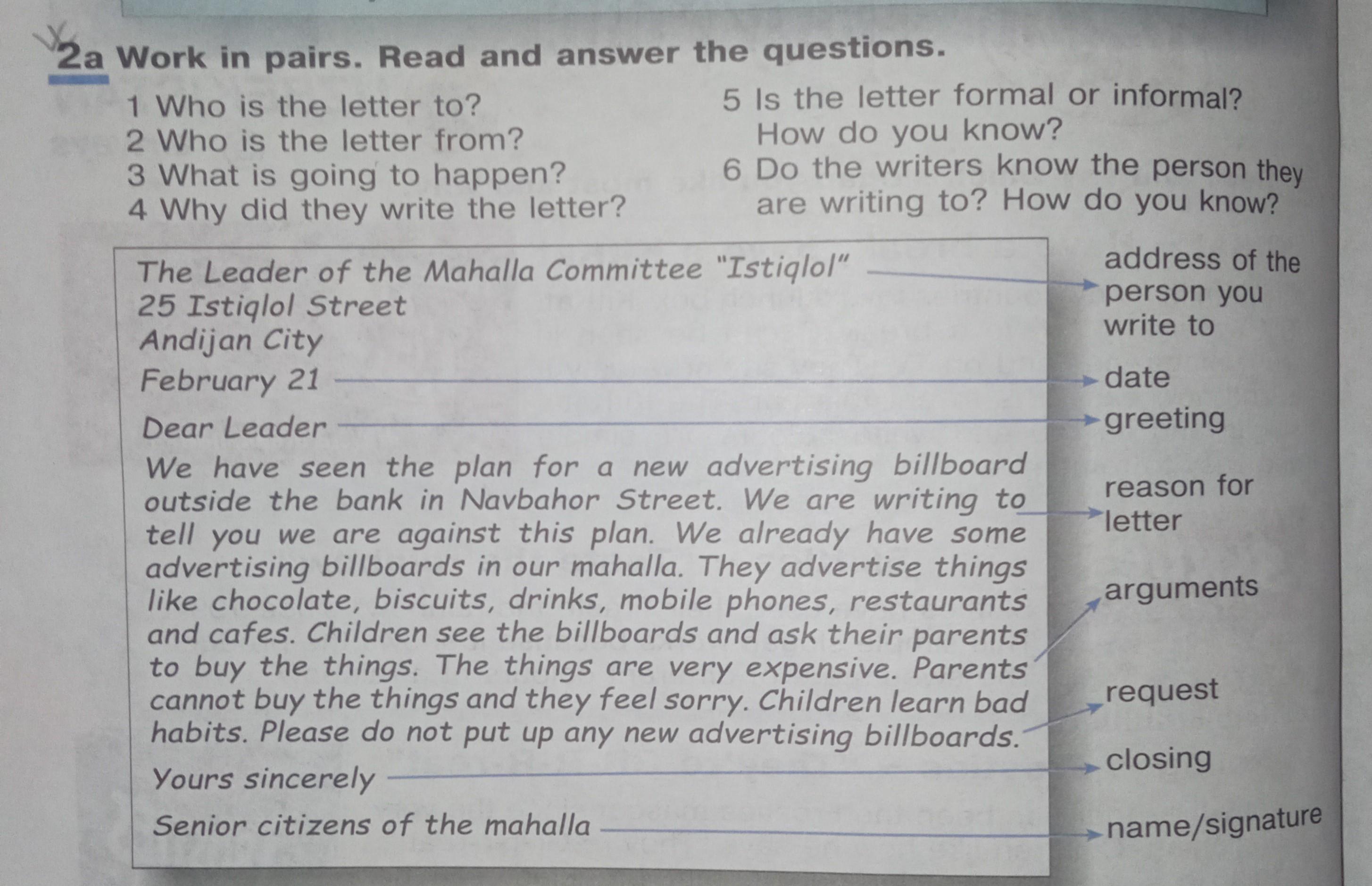 1. The letter is to the Leader of the Mahalla Committee "Istiqlol".
