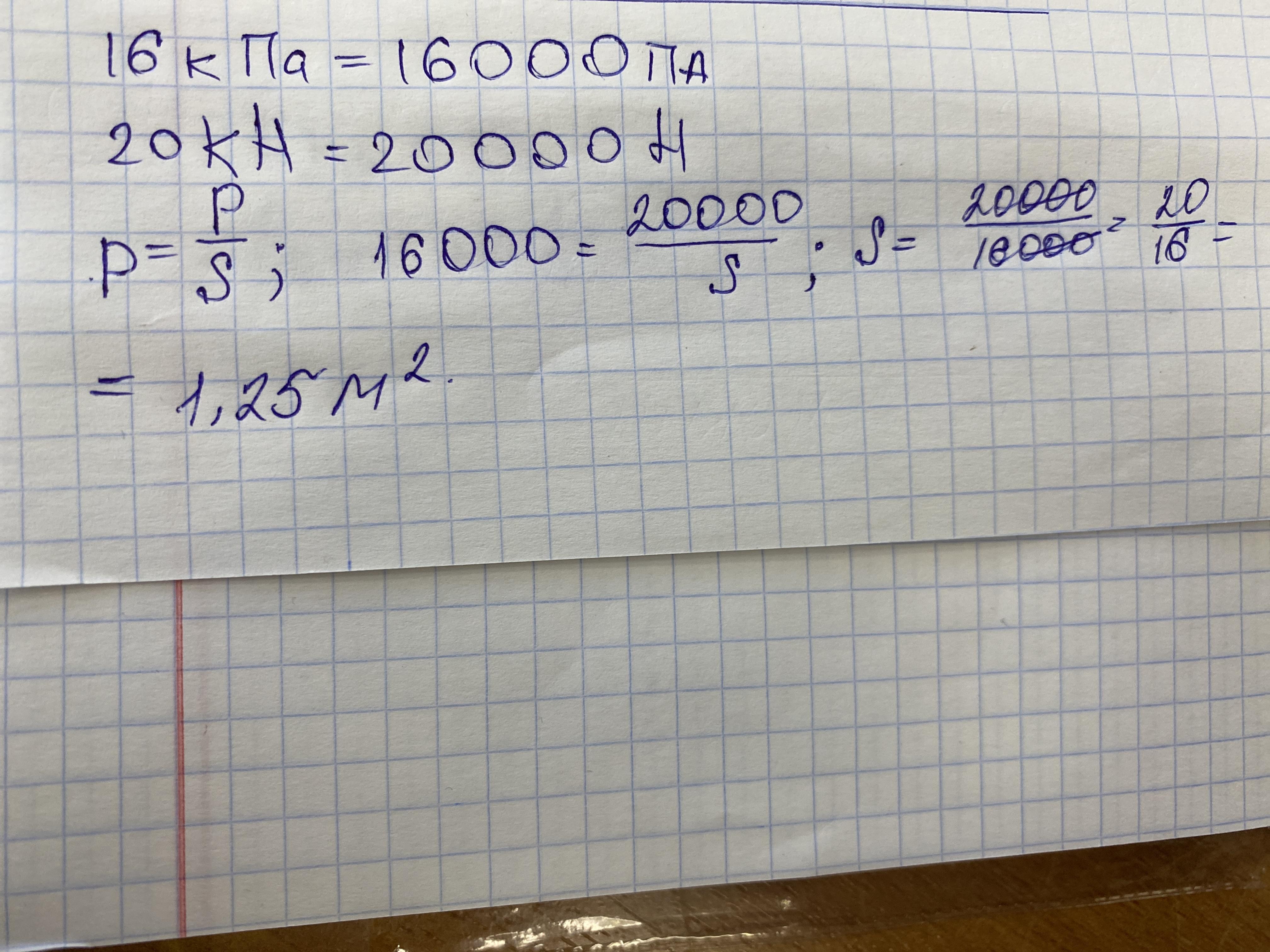 определите опорную площадь катка если его вес 20 кн а давление оказываемое им равно 16 кпа ответ
