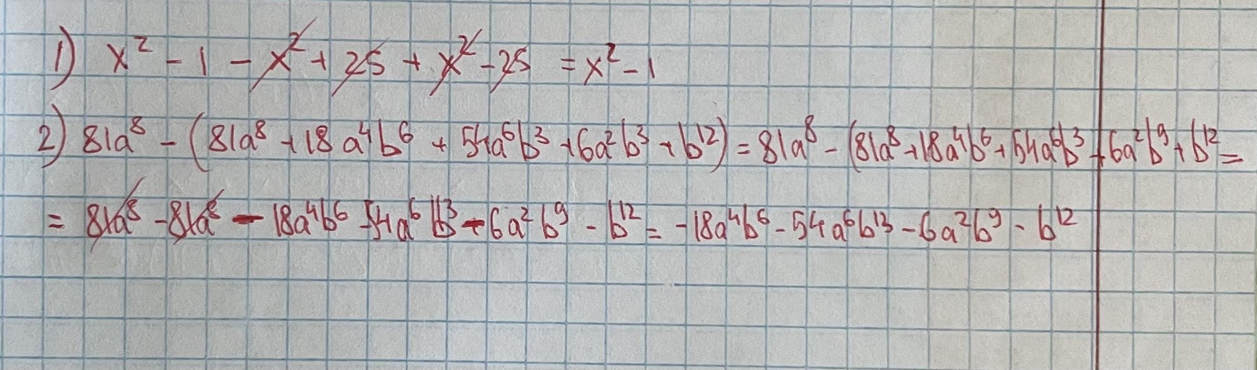 2)81a^8 — (3а^2 — b^3 ) (9а^4 + b^6 ) (3a^2 + b^3 )=