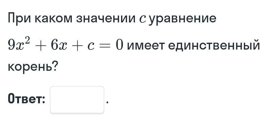 Квадратное уравнение имеет один корень, когда дискриминант равен нулю, поэтому решаем уравнение 6^2-4(9c)=0 => c = 1