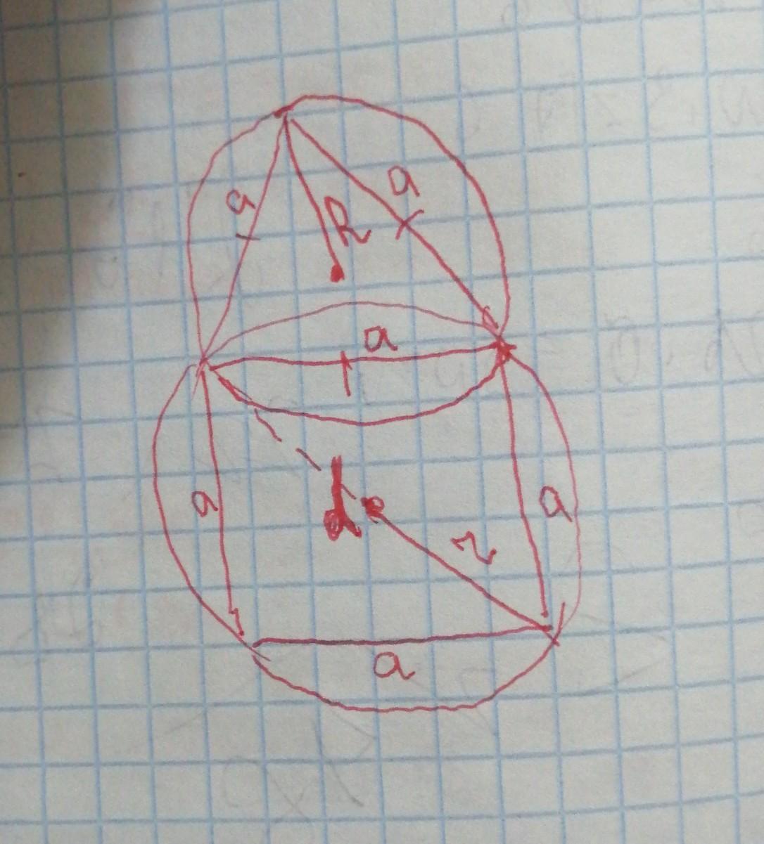 R- радиус описанной около правильного треугольника окружности =4 дм