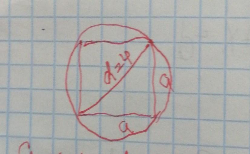 Сторона квадрата наибольшая, если квадрат вписан в окружность диаметр которого d=4 cм