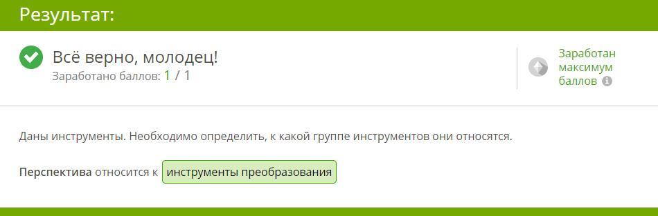Даны Инструменты. Необходимо определить, к какой группе инструментов они относятся. Перспектива относится к....