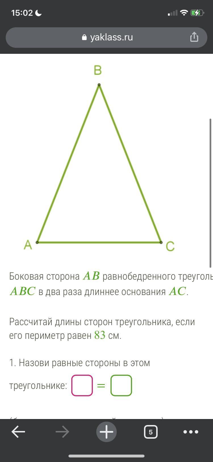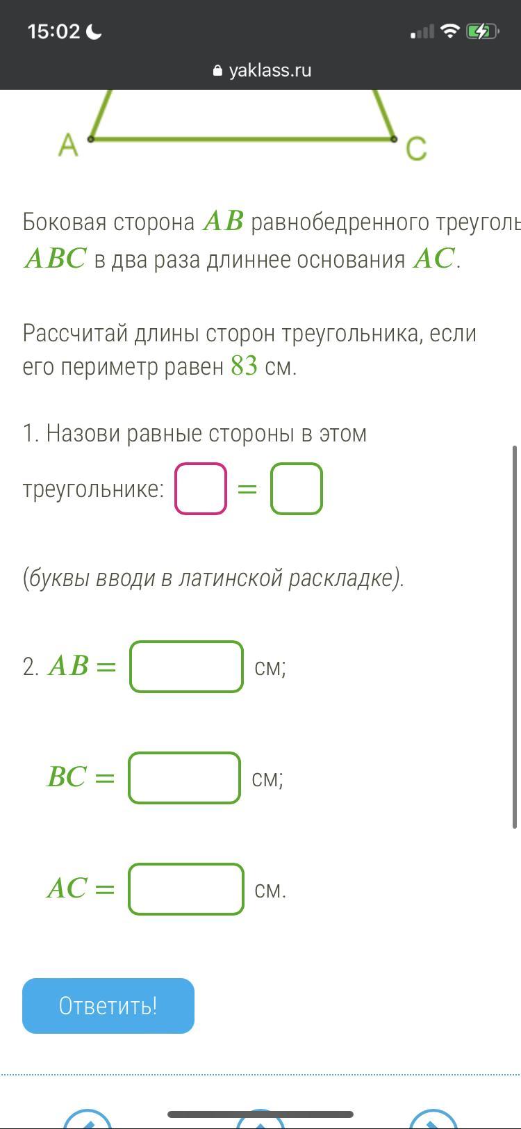 примем сторону АС = х, тогда равные стороны равнобедренного треугольника АВ=ВС=2х