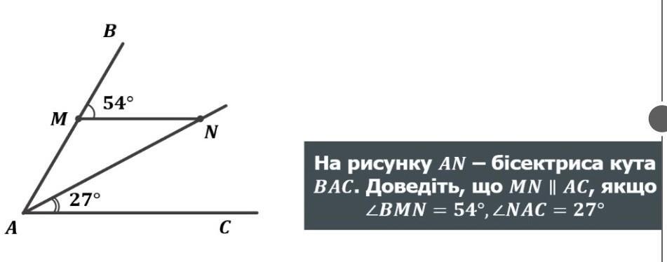 ∠MAC=∠BMN, соответственные углы при параллельных прямых МN||AC, секущей АВ.