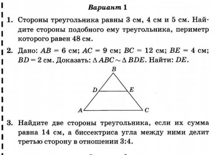 BD:BE = 2:4 каждая сторона больше в 2 раза. По двум сторонам и углу между ними доказали что ABC подобно DBE.