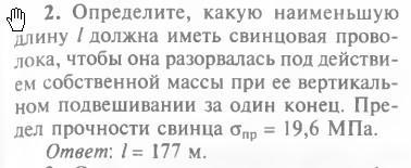 где предел прочности свинца σ = 19,6 МПа, плотность свинца ρ = 11,3 • 10³ кг/м³.