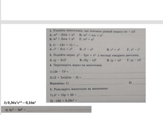 1 . ( m +a )² = m² + 2ma + a² . В - дь : В .