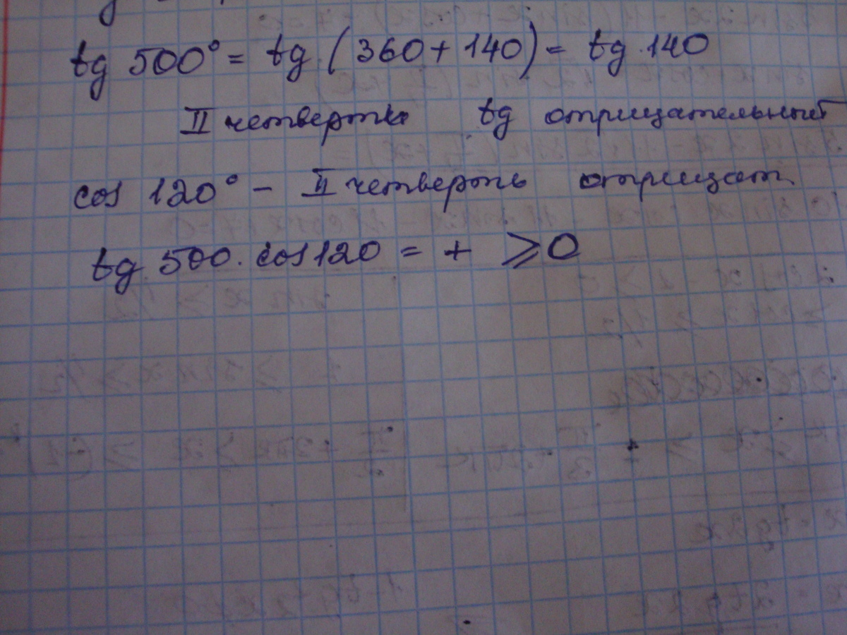 tg(500)=(360+140) вторая четверть <0