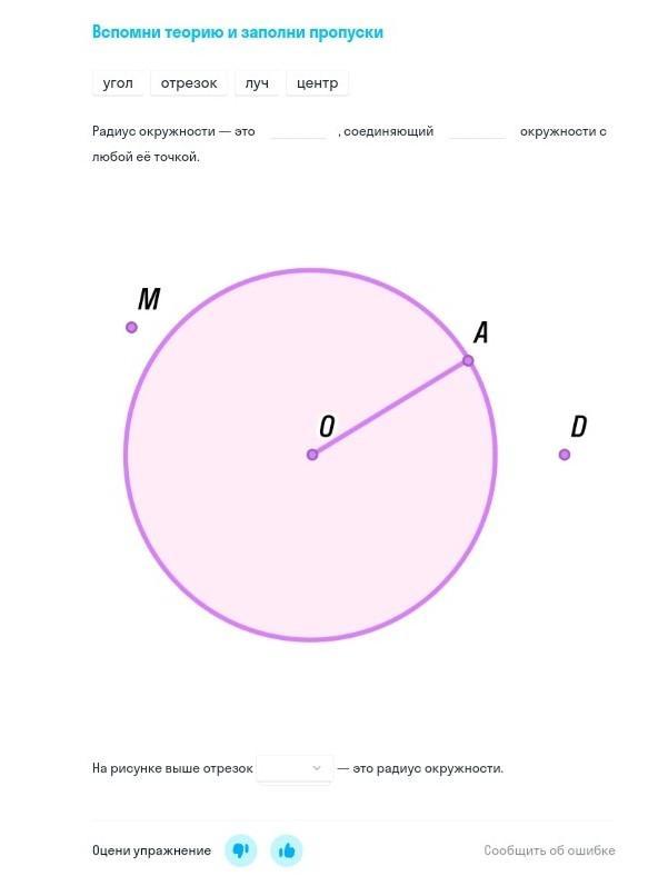 На рисунке выше отрезок ОА это радиус окружности.