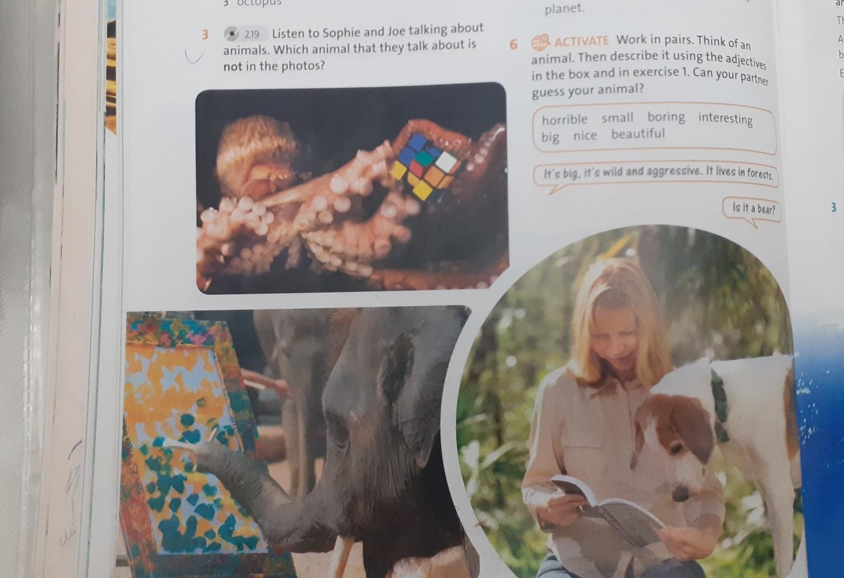 Listen to Sophie and Joe talking about animals. Which animal that they talk about is not in the photos?