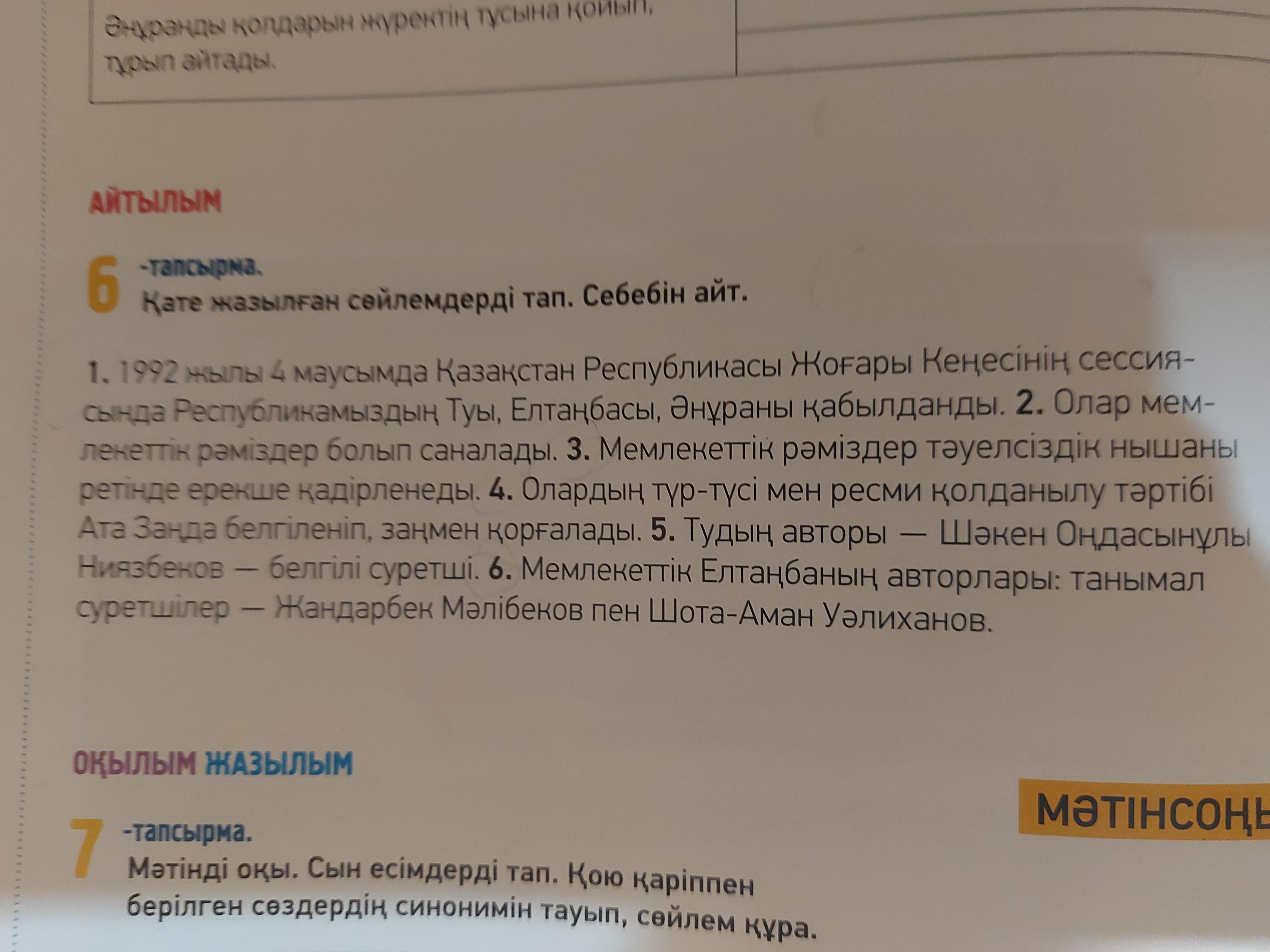 6 - Тапсырма. Қате жазылған сөйлемдерді тап. Себебін айт.