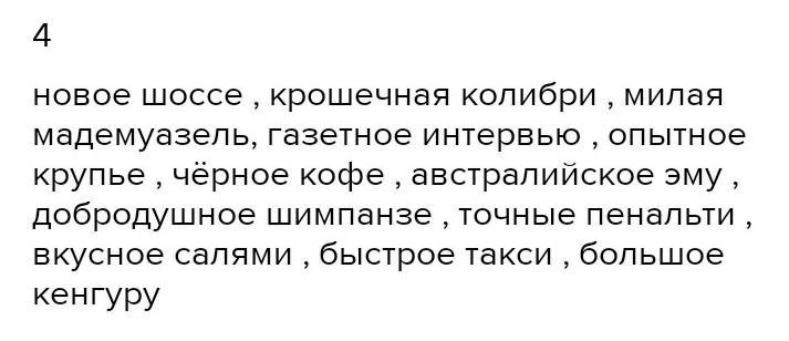 новое шоссе , крошечная колибри , милая мадемуазель, газетное интервью , опытное крупье , чёрное кофе , австралийское эму , добродушное шимпанзе , точные пенальти , вкусное салями , быстрое такси , большое кенгуру