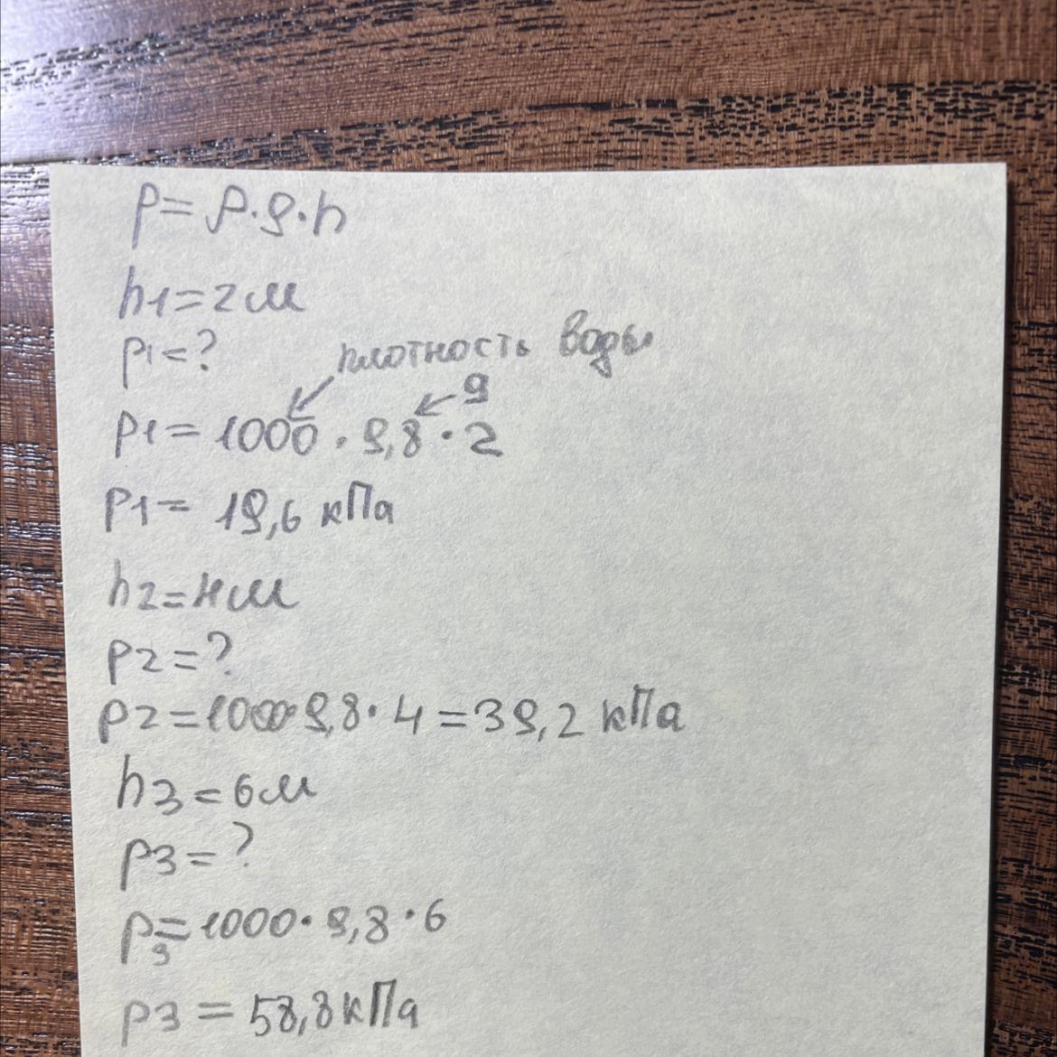 Задача 4 По графику на рисунке определите давление на глубине 2м 4м 6м Рассчитайте давление воды на указанных глубинах по формуле Сравните полученные значения