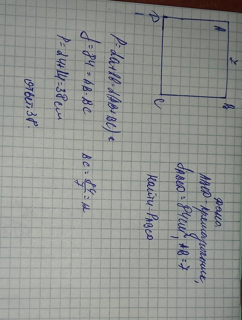 1. Площадь прямоугольника АВСД равна 84 см², AB = 7 см. Периметр прямоугольника равен: а) 12 см; б) 34 см; в) 36 см; г) 38 см. ;