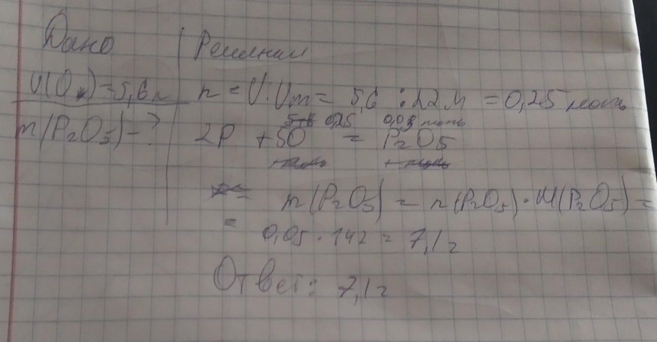 ДАЮ 60 БАЛОВ!!! Обчисліть масу фосфор (V) оксиду, який можна добути спалюванням фосфору в кисні об'ємом 5,6 л (н.у.).