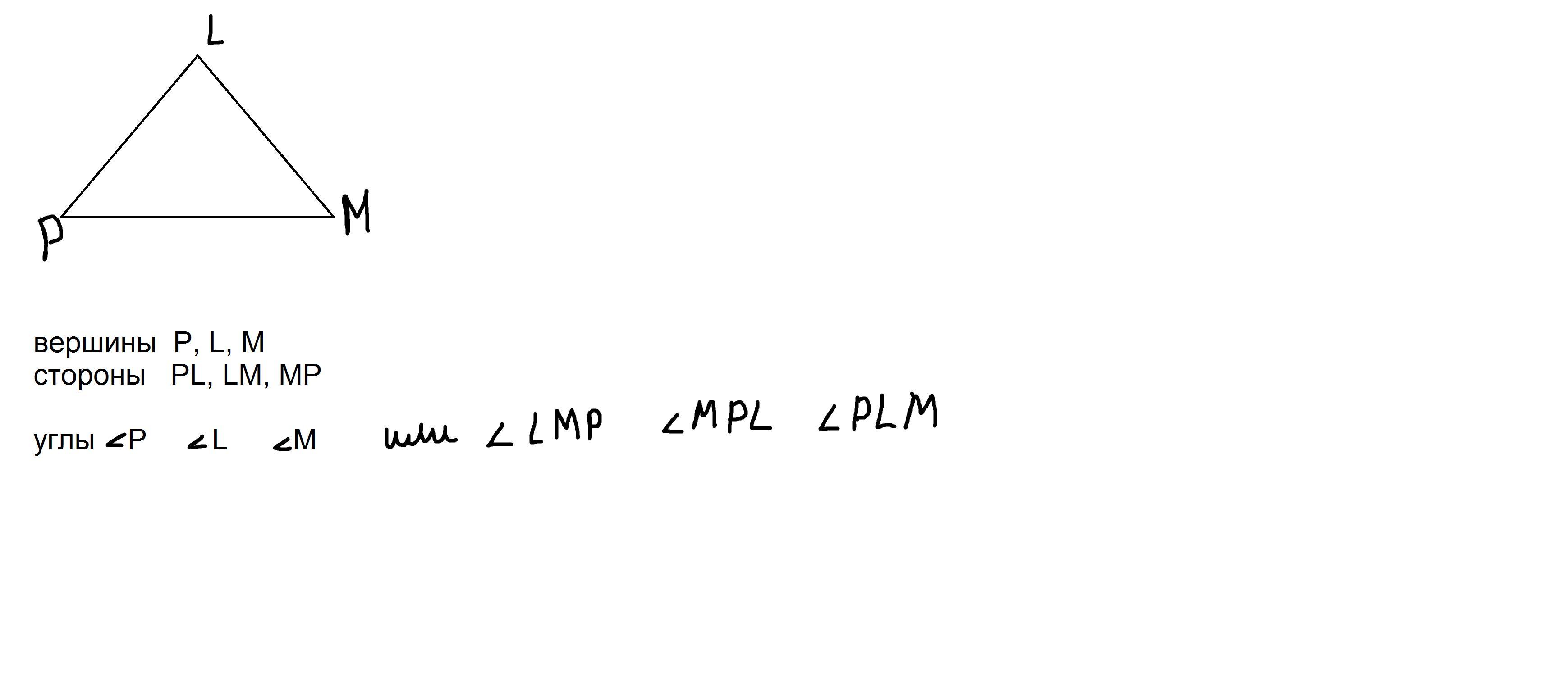 Побудуйте трикутник PLM. Запишіть вершини, сторони та кути цього трикутника. Помогите пожалуйста!