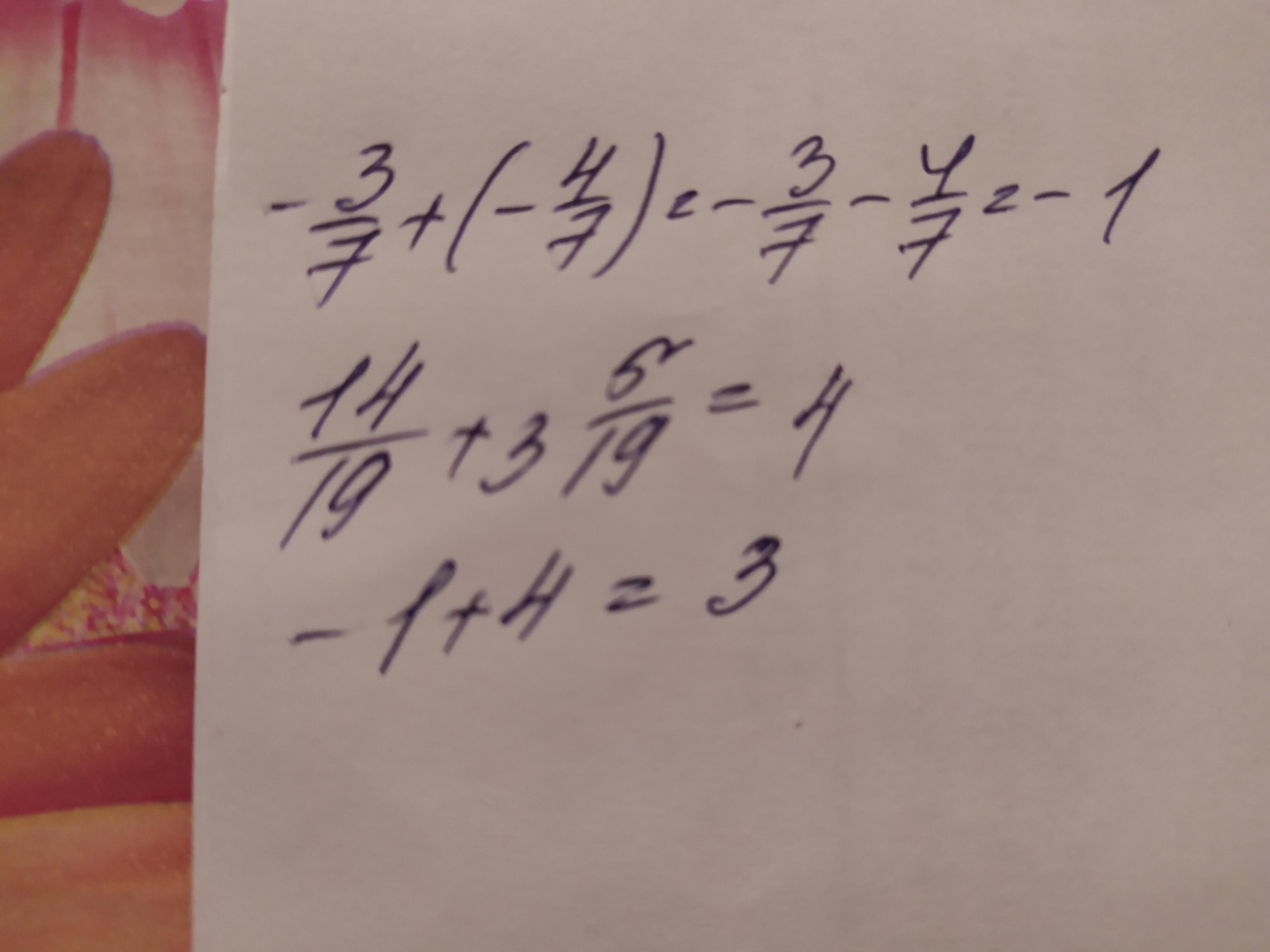 3)4/1+(-6/7)=28/7+(-6/7)= 3 1/7