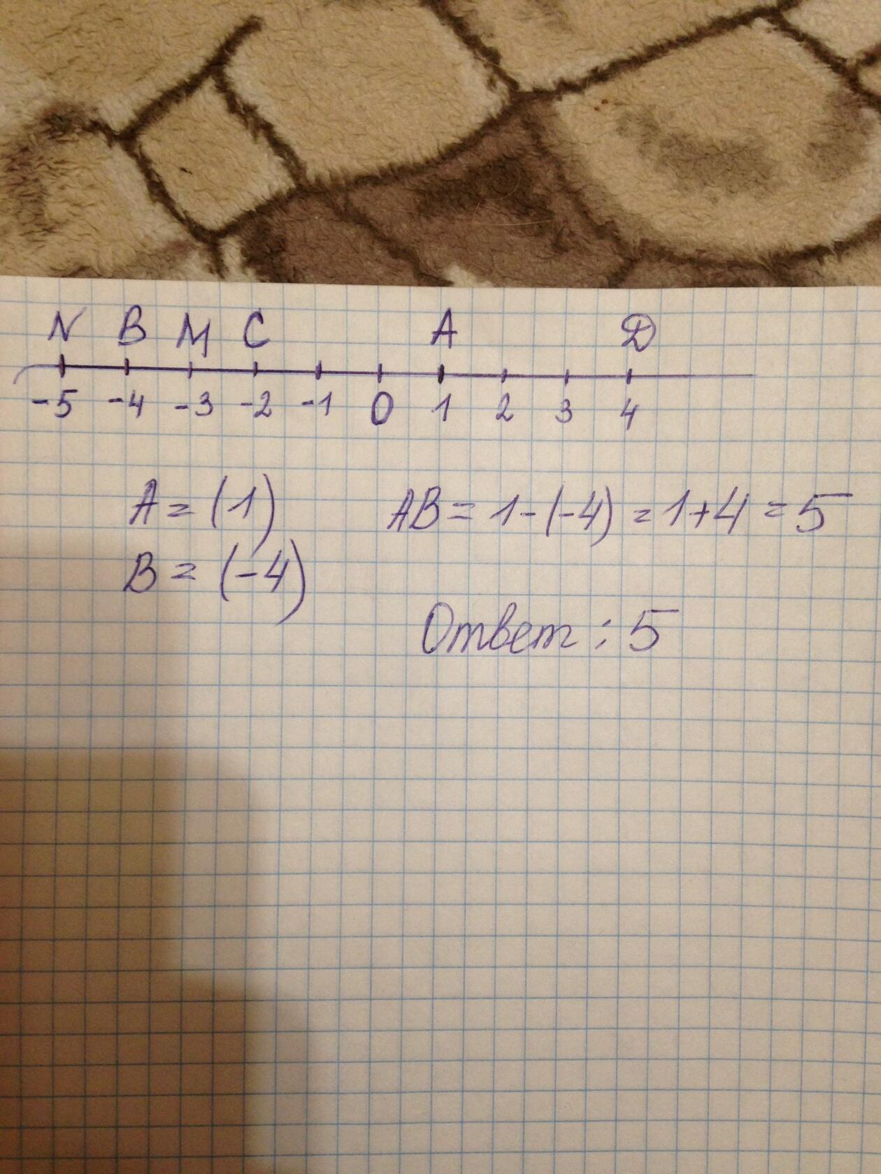 Найдите расстояние между точками А и В, если А -середина отрезка с концами в точках C (-2) и D(4), а В — середина отрез- ка с концами в точках М(-3) и N(-5).