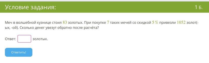 Тогда общая стоимость 7 мечей со скидкой = 581 - 29,05 = 551,95 золотых