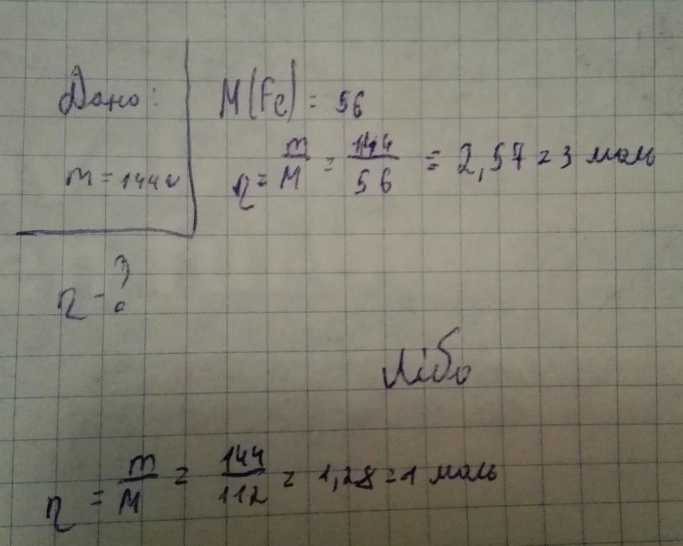 Якій кількості речовини відповідає залізо масою 144 г? Обчисліть число атомівФерруму в даній порції речовини.