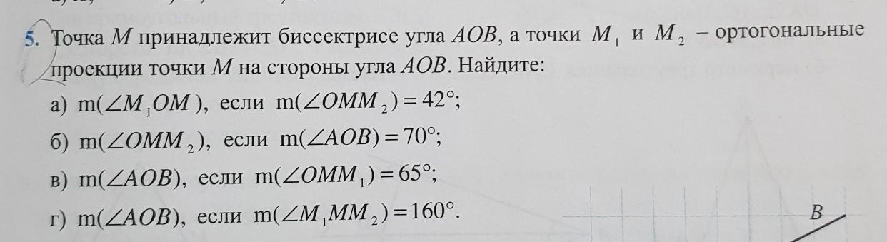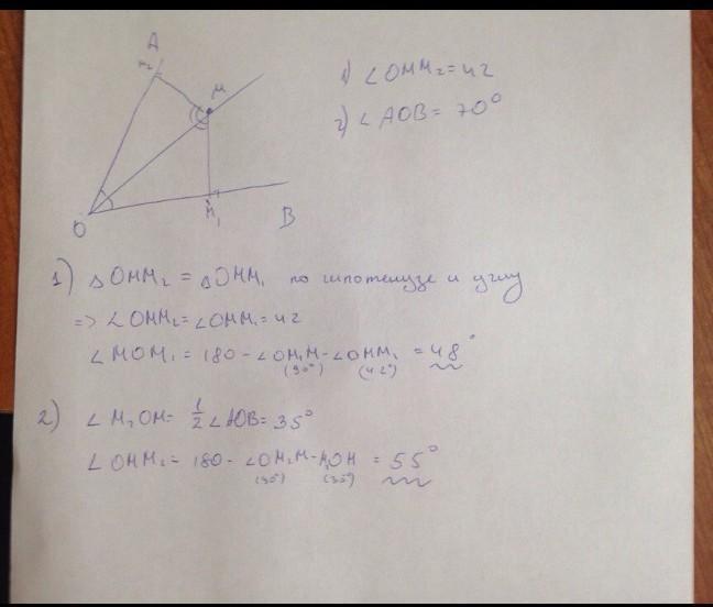 Точка М принадлежит биссектрисе угла AOB, а точки M, и М, – ортогональные проекции точки М на стороны угла АОВ