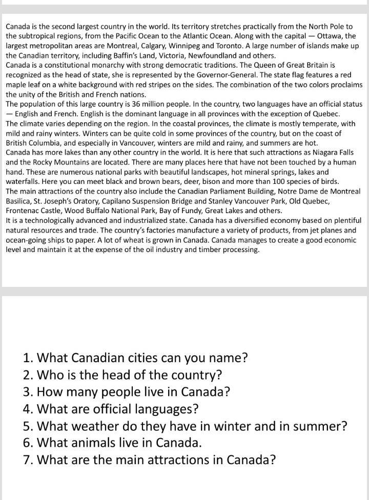 1. Ottawa, Montreal, Calgary, Winnipeg and Toronto