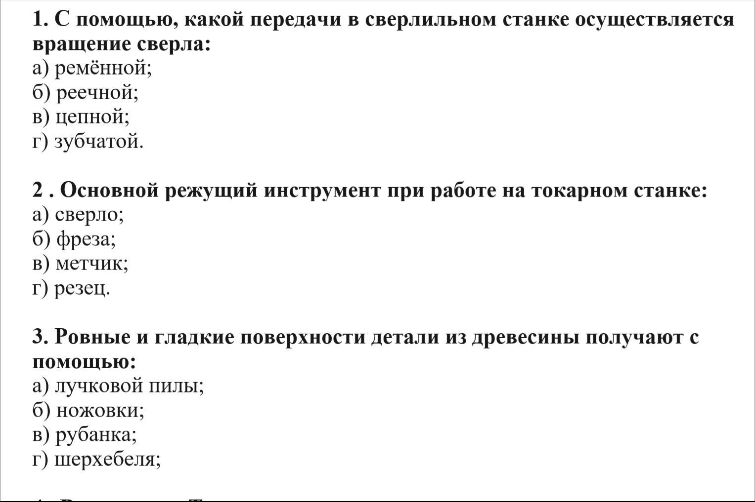 Ответ:1.а, 2.г, 3.в, г(рубанок и шерхебель это почти одно и тоже)